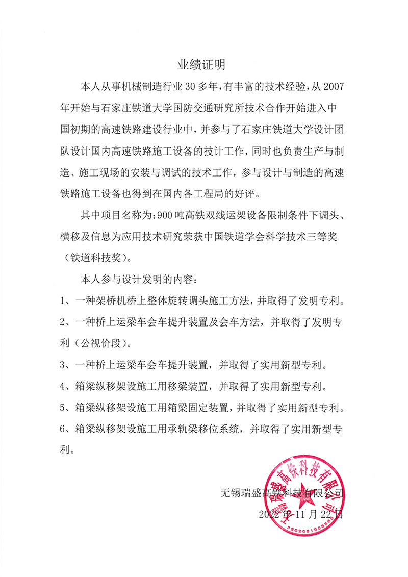 【發明專利證書】一種架橋機橋上整體旋轉調頭施工方法